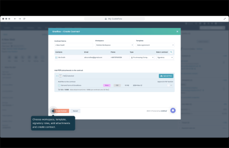 Build, edit, and send contracts without leaving HubSpot. Oneflow auto-fills company, contact, and deal fields, so your team spends less time on manual entry and more time selling.