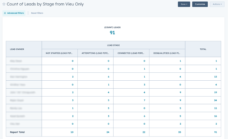 Custom dashboards track lead sources, response times, conversion progress, and Vieu’s contribution to new business. These reports have become the centerpiece of weekly pipeline reviews, giving leadership clarity and confidence in the data.