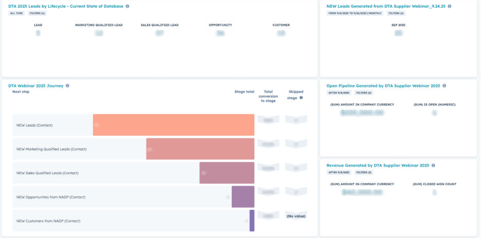 Marketing couldn’t show how its campaigns were contributing to revenue. Without lifecycle stages or attribution models in place, it was difficult to prove impact, defend budget, or prioritize high-performing channels. Leadership lacked a clear view of what was working—and what wasn’t.