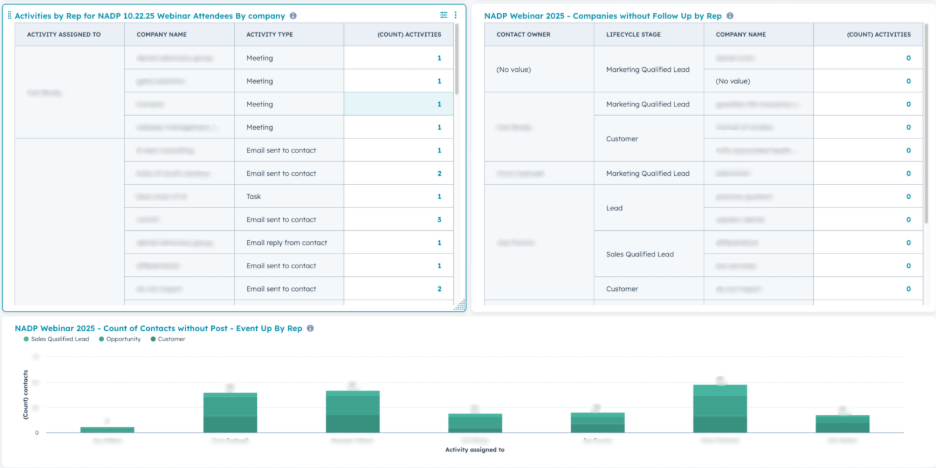 The client’s leadership team no longer relies on anecdotes or manual updates. Real-time dashboards provide clear insights into campaign ROI, rep activity, and account progression—enabling faster decisions and stronger alignment across the org.