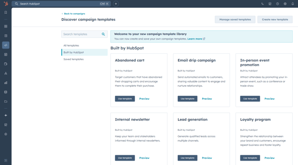 When creating a campaign, HubSpot provides various templates that serve as starting points for different marketing objectives. Choosing the right template can help streamline your setup.